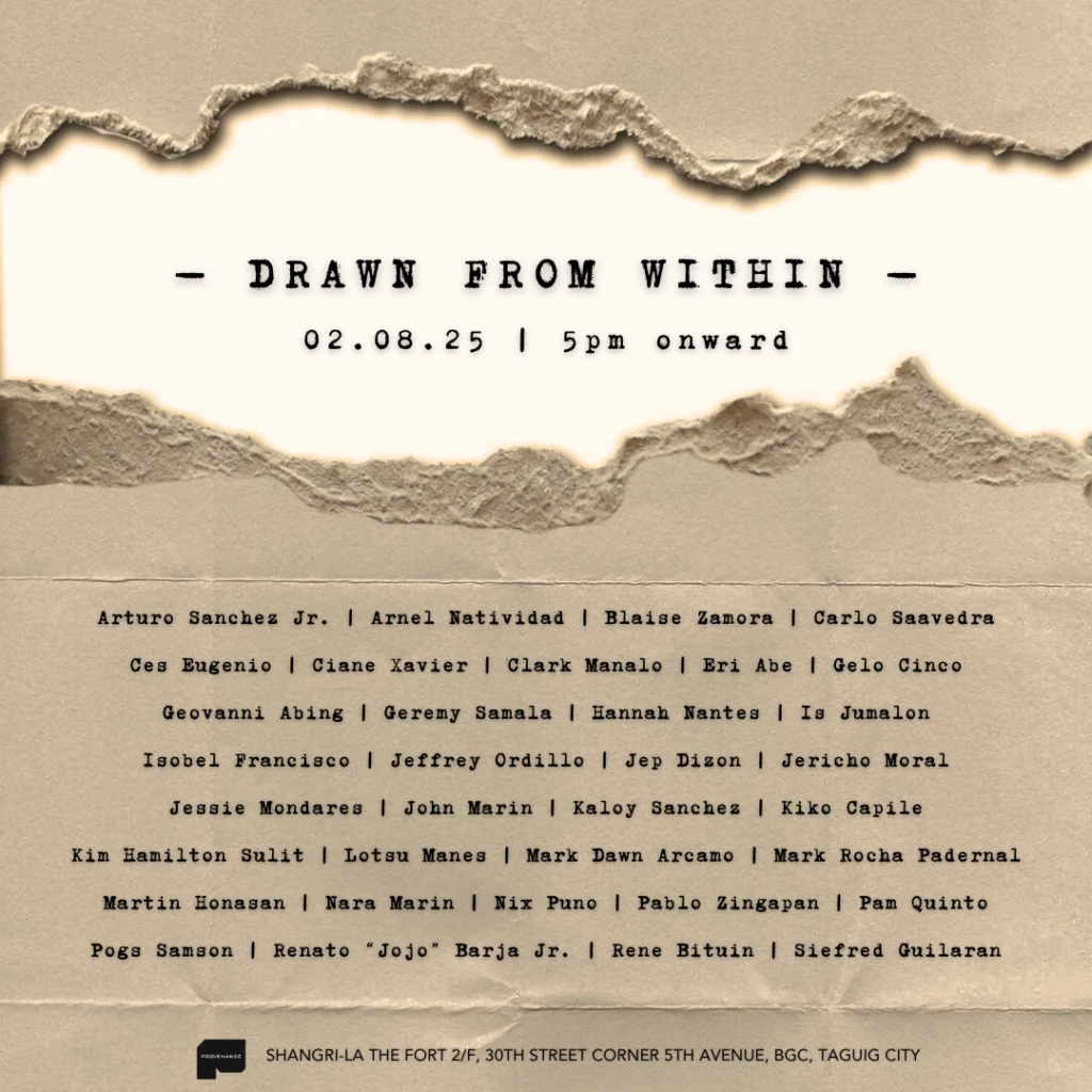PROVENANCE LOOKS TO CONTINUE TO FORM MORE PARTNERSHIPS LOCALLY AND INTERNATIONALLY, AND TO ENSURE THAT THE PRESENT AND FUTURE OF PHILIPPINE ART IS REPRESENTED WITH PRIDE AND GRAVITAS. THE GALLERY IS DEDICATED TO WORKING CLOSELY WITH ARTISTS AND MAKING SURE THAT THE WORK OF THEIR HANDS GETS THE RECOGNITION THAT IT DESERVES, AND BY GETTING THE RIGHT PARTNERSHIPS TO SUPPORT THESE SHOWS. WITH PROVENANCE’S VARIOUS COLLABORATIONS WITH THE COUNTRY’S BEST ARTISTS, INTERNATIONAL ORGANIZATIONS, AND FOUNDATIONS — PROVENANCE ART GALLERY KNOWS HOW TO PUT ON A SHOW WITH A GLOBAL VIEW.